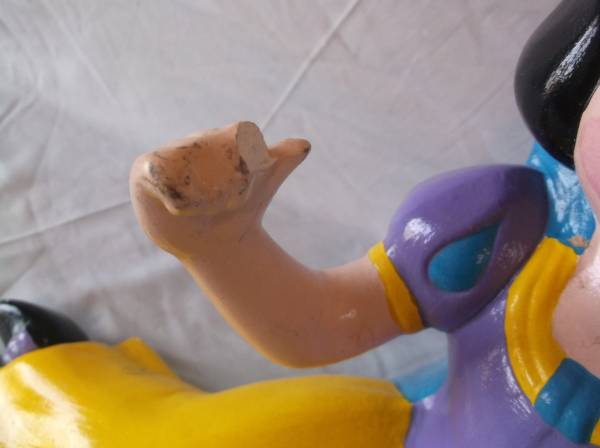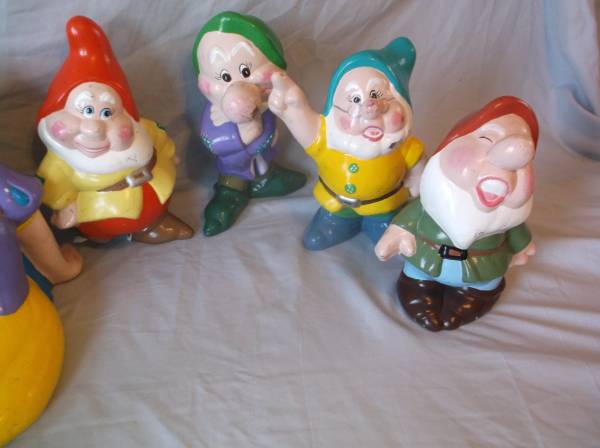 For sale a complete set of snow white and seven dwarfs ceramic figurines. One is damaged but repairable. Snow White's finger broke off but is also repairable and comes with blue bird. Asking $45.00...