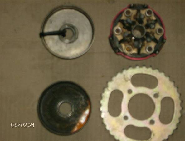 the 7th single picture is a new Max Torque OEM clutch for small engine go carts or mini bike. fits 5/8" shaft for 40, 41 and possibly 420 pitch chains. ($50.00)