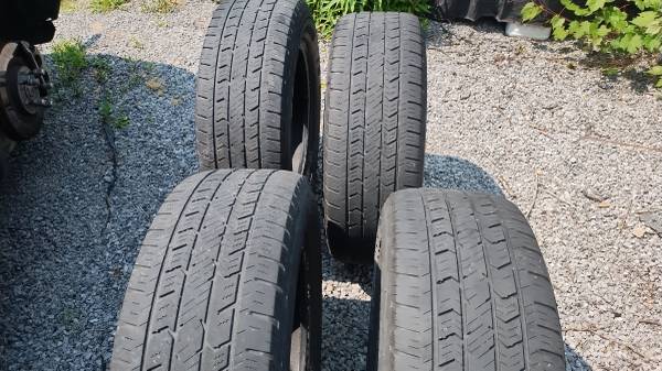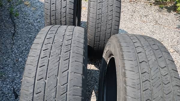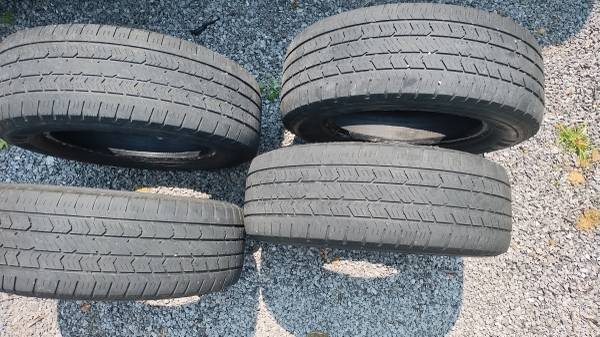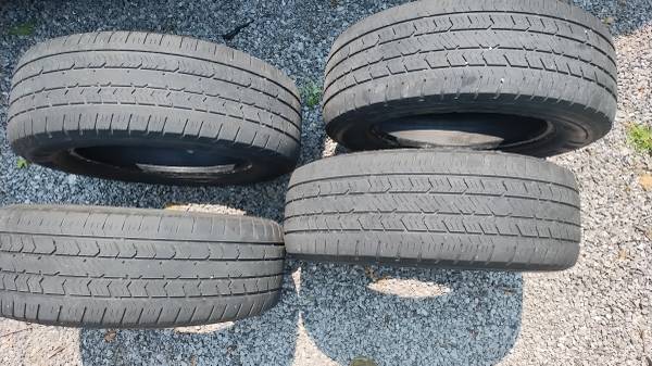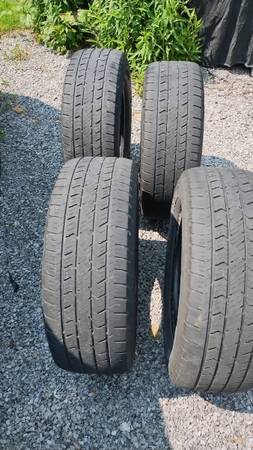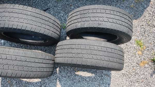 Tread is still good for about a year or so, passed inspection at Honda dealer 3 months before i got new tires and know someone could use a good set of tires for a fair price. 100 bucks cash firm. I drove on them up until a few months ago. One tire has had a plug for 2 years with no leaks. All tires are worn very evenly. Sell all 4 as set only. These just drove thru winter and were good in snow.