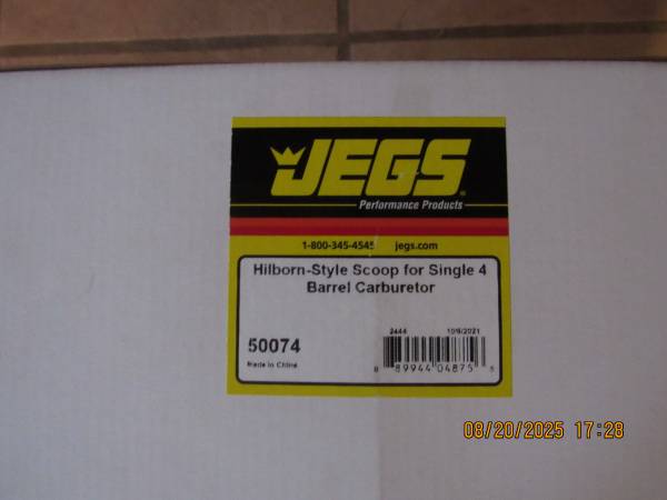 Hilborn style scoop black powdercoat. Fits standard four barrel carburetor. New, still in box, never used. Call after 5pm, if no answer leave message for CJ (7one6)7five3-2one42. No help selling...